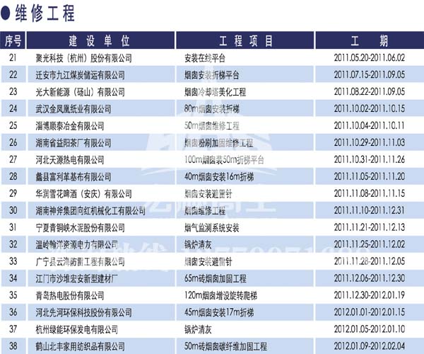 宏順建設(shè)工程有限公司是國家批準(zhǔn)成立的專業(yè)高空作業(yè)企業(yè):承攬過(國內(nèi).國外)煙囪新建、煙囪防腐、磚煙囪新建、煙囪改造、煙囪維修、煙囪脫硫防腐、煙囪拆除加高、煙囪滑膜等高空作業(yè)工程。具有“不搭腳手架 、 不需要停產(chǎn)”施工特點(diǎn)。